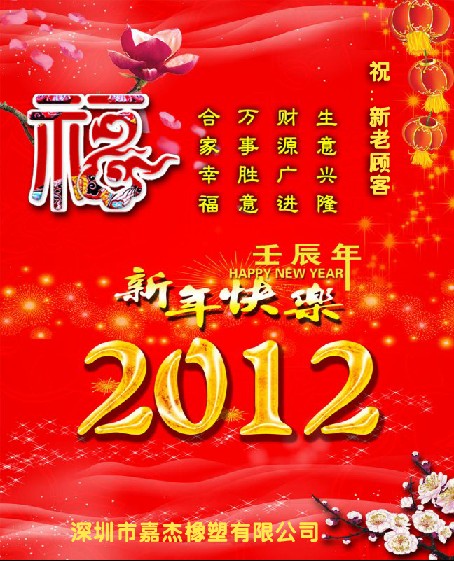 又是新的一年了,新年的開始,嘉杰橡塑有限公司給新老顧客拜年了,祝你們?cè)谛碌囊荒昀?BR> 財(cái)源滾滾、蒸蒸日上,愿你們身體健康、闔家歡樂!